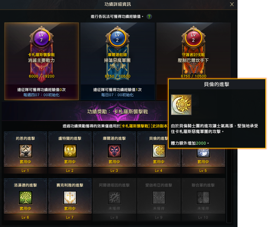 - 以遠征隊為單位,每日可獲得1次功績經驗值,並於每日07:00初始化。