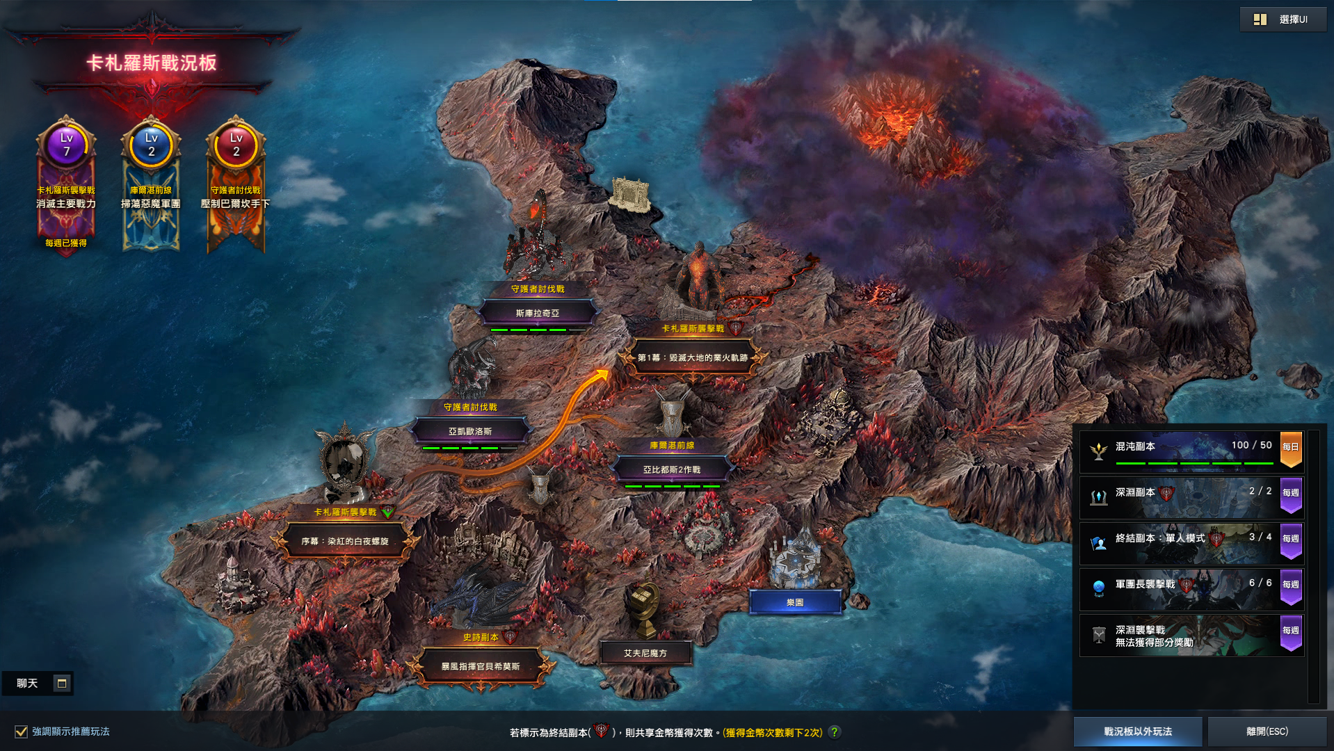 - 可在卡札羅斯戰況板確認 [段位4] 區間的主要玩法及庫爾湛大陸現況。